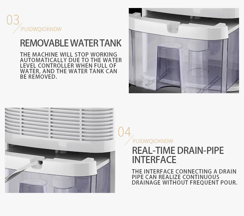 Dehumidifier and Air Purifier 2 in 1 Moisture Absorber Household Mute Bedroom Basement Remote Control Timing External Water Pipe