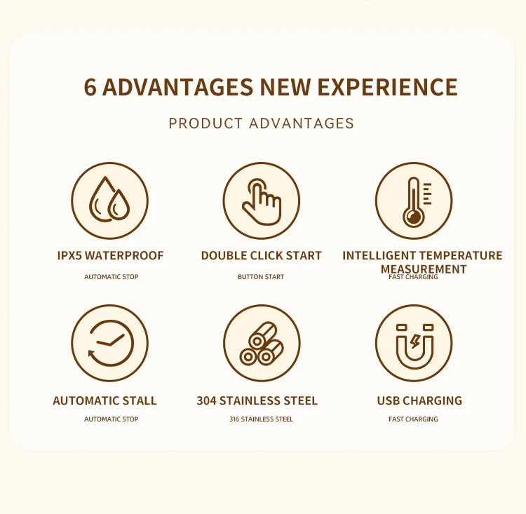 Perfetta per casa, ufficio e viaggi. Ricaricabile USB, impermeabile IP67 e sicura per alimenti.