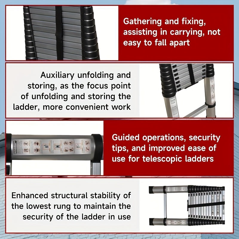 La scala telescopica Brstheco da 3.8m è la soluzione ideale per lavori in casa, giardino e ristrutturazioni. Grazie al suo design telescopico e pieghevole, si estende fino a 3.8 metri e si richiude in modo compatto per un facile trasporto e stoccaggio.