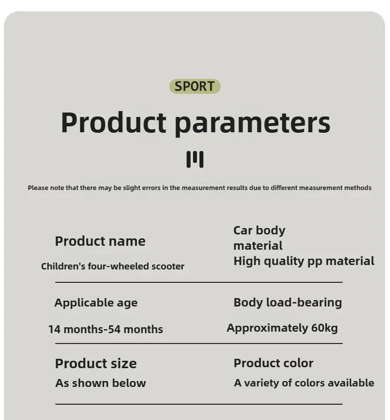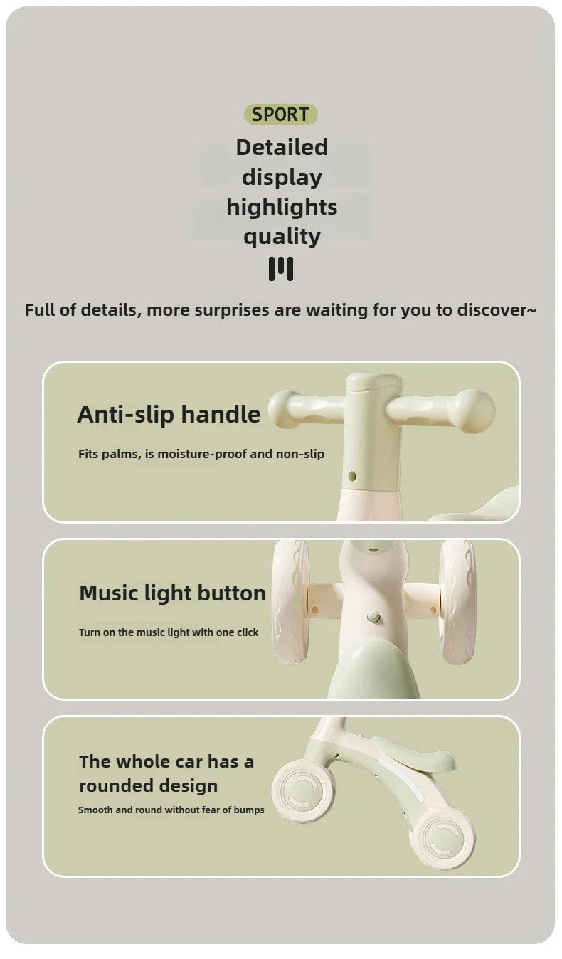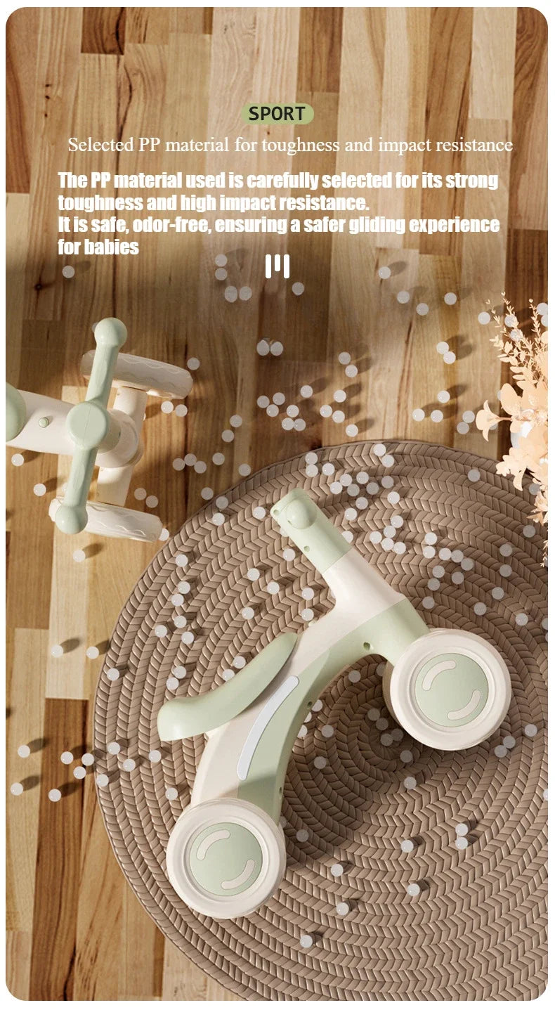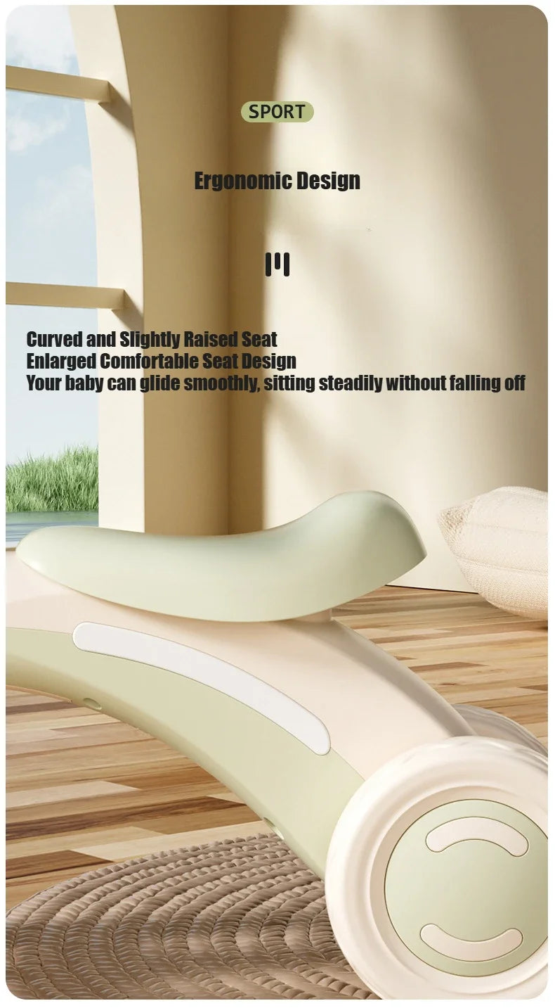Anti-Tip Baby Balance Bike Ages 1-3 4-Wheel Silent Glider Walker Toy Toddler Training Ride-On with Safety Wheels Indoor Outdoor