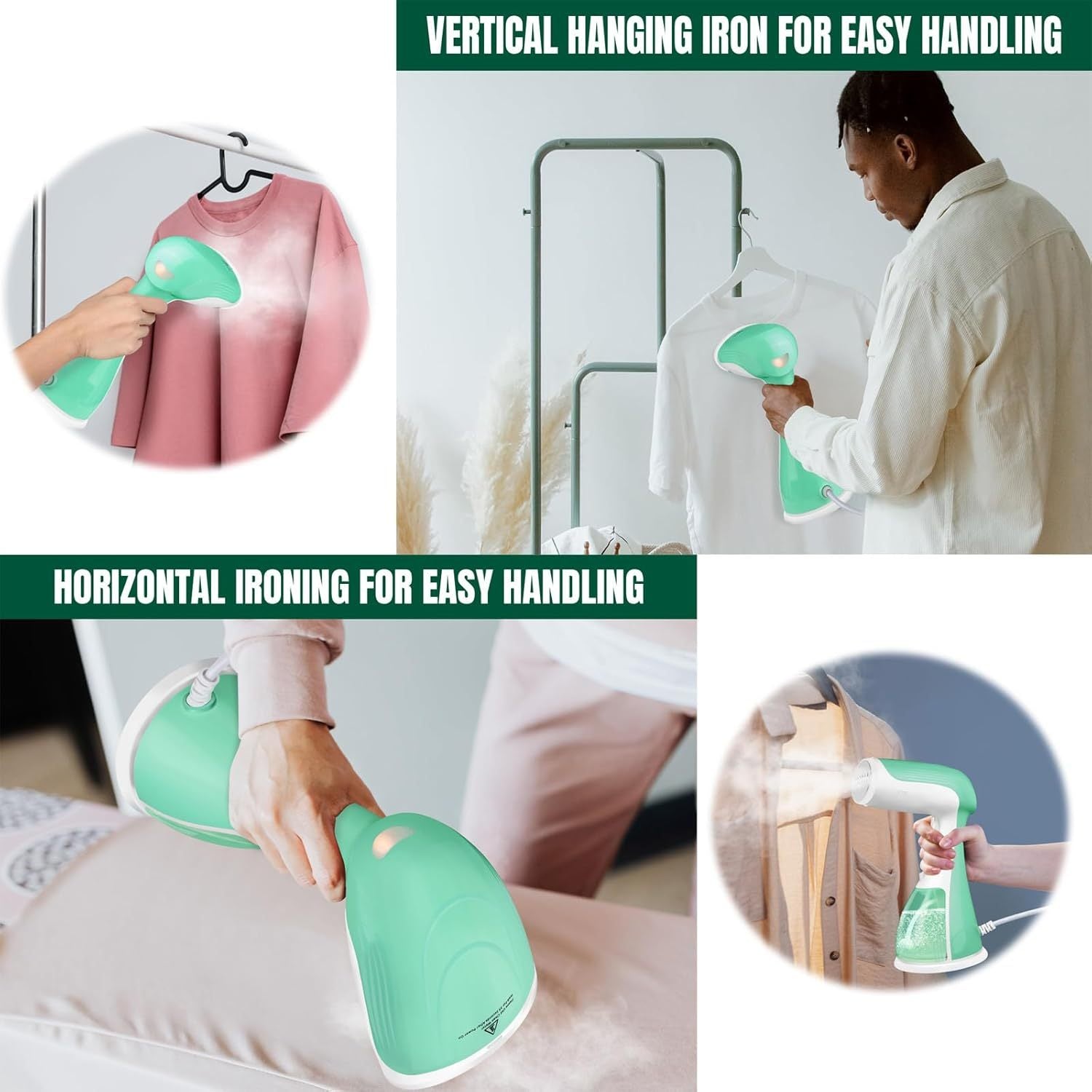 Scopri la stiratrice a vapore portatile DAYPLUS da 1500W, perfetta per casa, ufficio e viaggi. Riscaldamento rapido in 30 secondi e serbatoio da 300ml per eliminare le pieghe in modo veloce ed efficace.