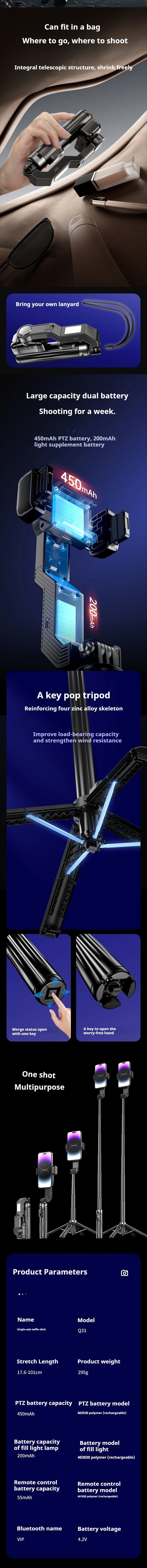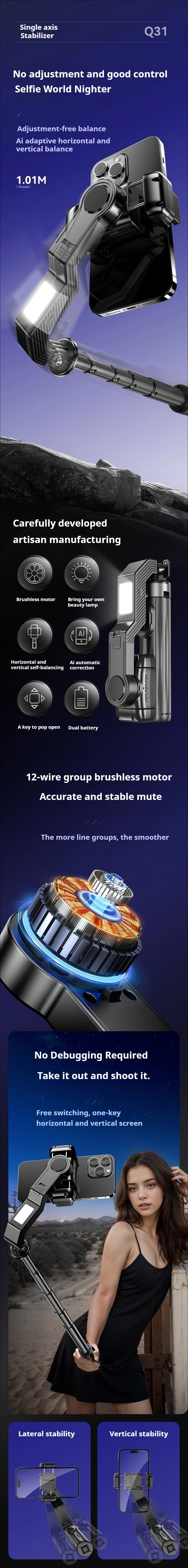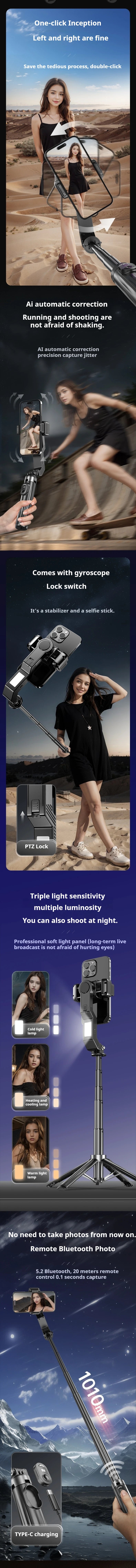 Handheld Gimbal Stabilizer Smartphone Camera Stabilizer Selfie Stick Tripod Stand Wireless Remote for IPhone Android