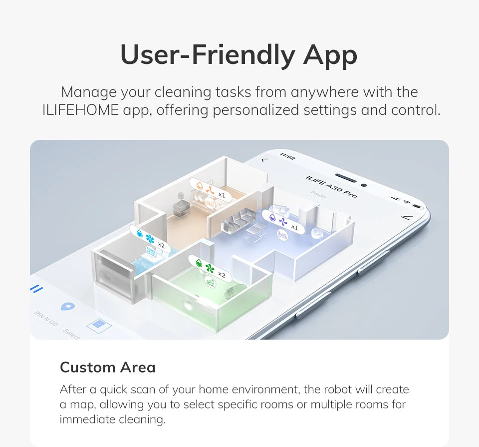 ILIFE A30 PRO 5000Pa Suction, Robot Vacuum and Mop Combo, Self emptying, 60 day capacity, App/remote , 180 minute running time