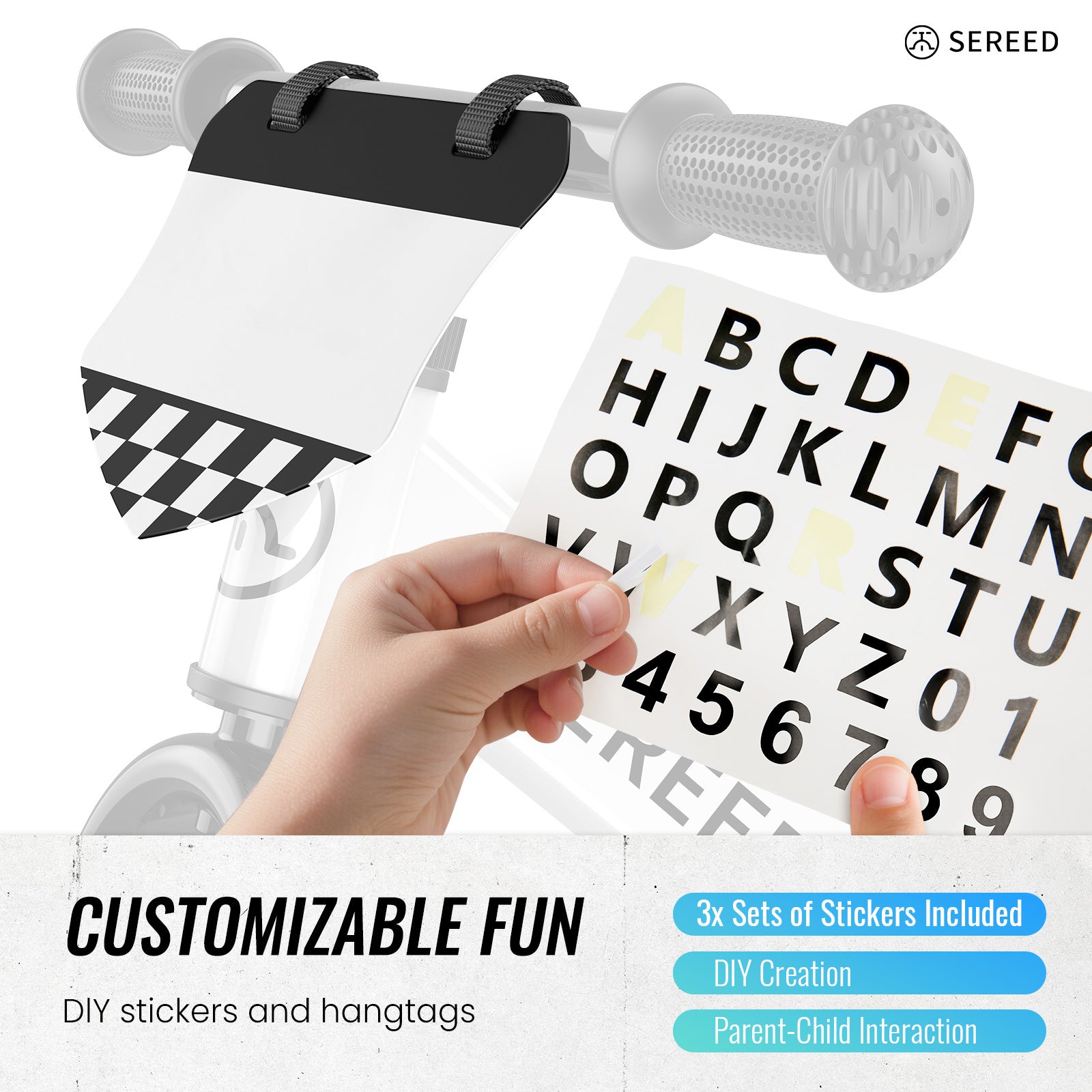 SEREED Balance Bike, 2025 Upgrade Toddler Balance Bike for 2-5 Years Old Boys & Girls, No Pedal Kids Bicycle Toys, Tool-Free Adjustment, Customize Plate with Stickers,