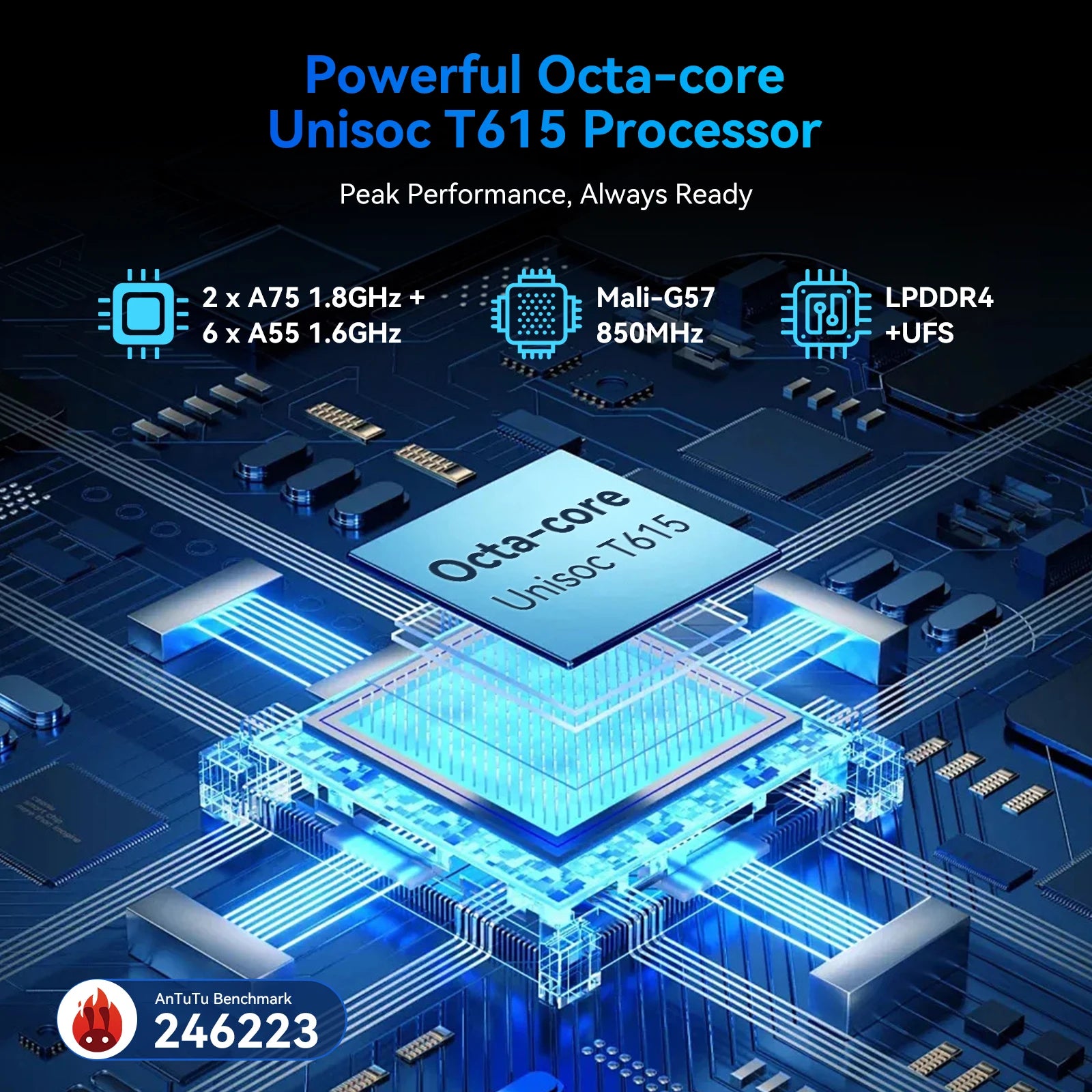 • Processore Octa-Core T615 - Potenza di calcolo per gaming e produttività