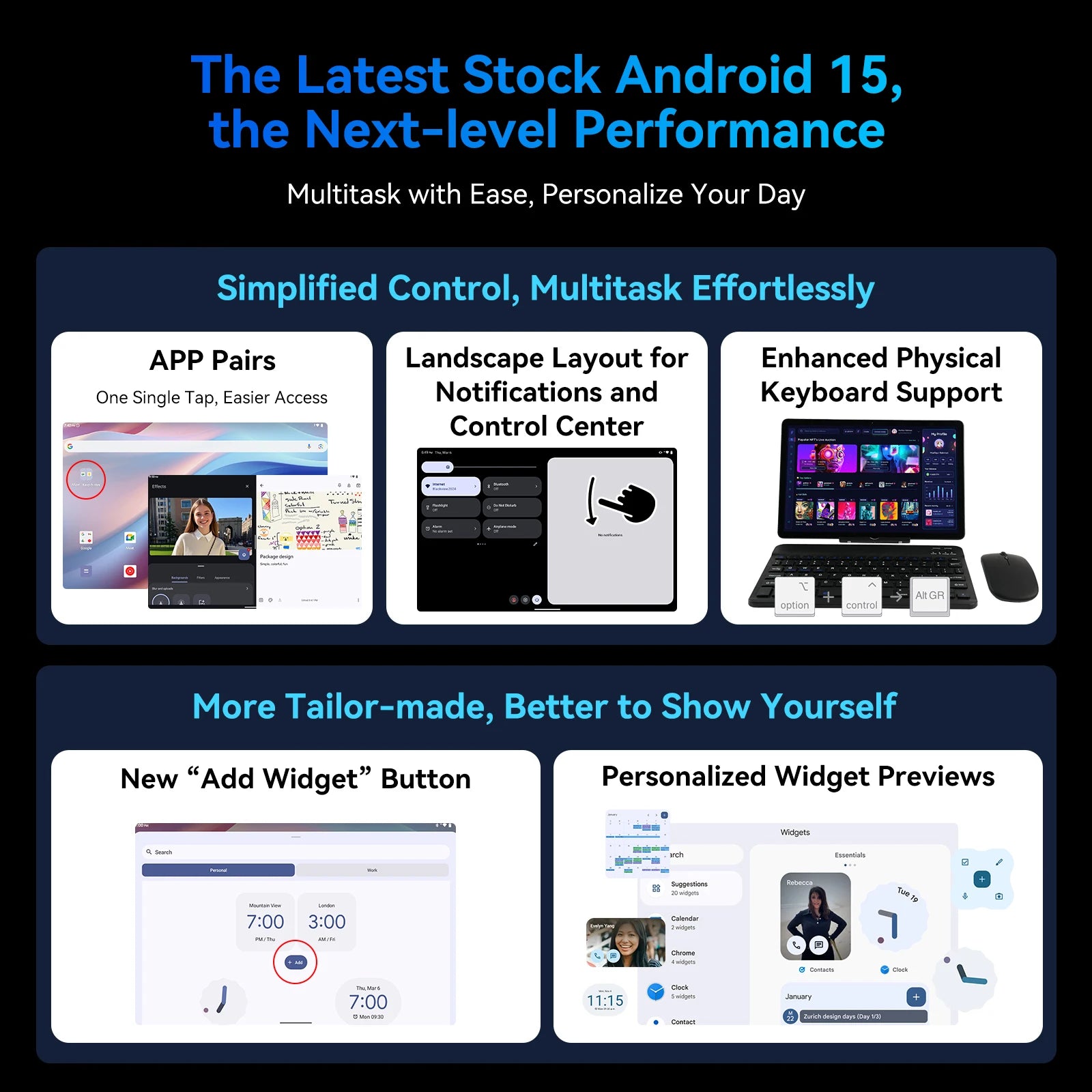 Scopri il tablet completo con Android 15 e intelligenza artificiale Gemini, dotato di tastiera Bluetooth e mouse inclusi. La soluzione perfetta per trasformare il tuo tablet in una vera workstation portatile.