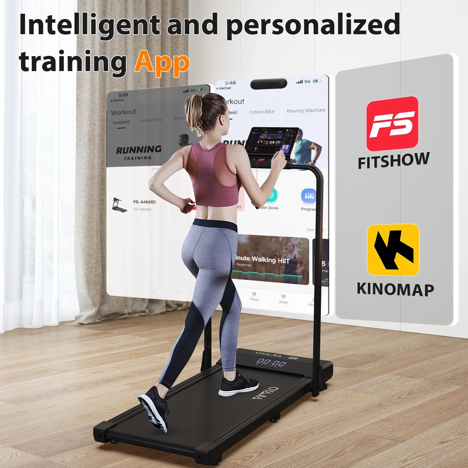 Treadmill with Remote, App & Button Control | LED Display | Safety Clip | Bluetooth Music | Quiet for Home/Office