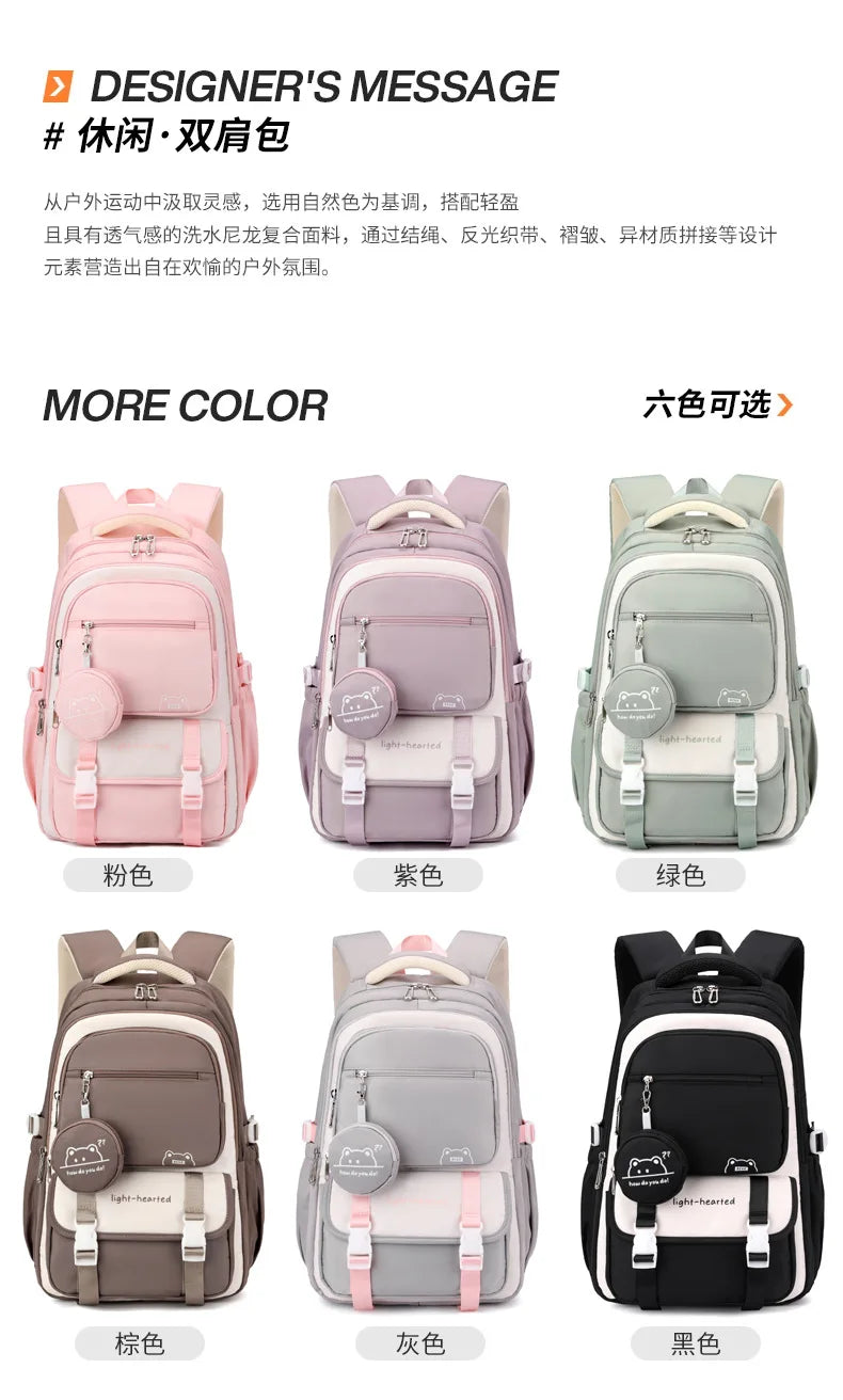 Perfetto per la scuola e i viaggi, questo zaino impermeabile combina stile e funzionalità. Progettato specificamente per ragazze, bambini e adolescenti, offre ampio spazio per libri, quaderni e accessori personali.
